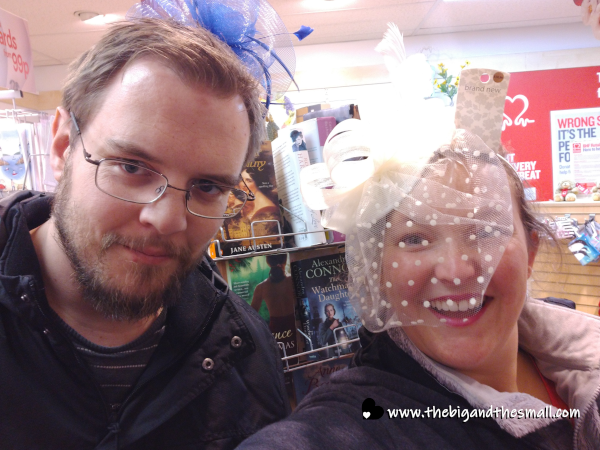 Since kick-off for the game was at 6:30 pm Eastern, that means it wasn't on here until 11:30 pm. Which, while it means we were in for a long night/early morning, we had plenty of time on Sunday to do other things as well! Shortly after Steve arrived we walked down to High Street and took a stroll through Clark's Village (the outlet mall here in town). We also spent some time checking out the charity shops, which is one of my new favorite hobbies. Even though we can't buy anything, it's still fun to see what you can find! Like these awesome headbands.