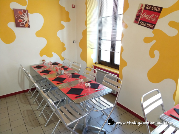 On every table was a small glass dish containing something called "sauce pimentee pour pizza" so of course, we had to give a try. (We usually like parmesan cheese and red pepper on our pizza but we haven't found that available since leaving the States, even at a Pizza Hut!) I was surprised to find the sauce was more of an oil than an actual sauce like I expected, but I put a little on my first slice to give it a try. Then I took two more packets and covered my entire pizza because it was amazing! It added a subtle spice that continued to build, and a great mouthfeel (pardon my pretentious term there.) I kind of regret not stashing the rest of the packets in my purse to bring home as I think it would elevate any frozen pizza to halfway decent.