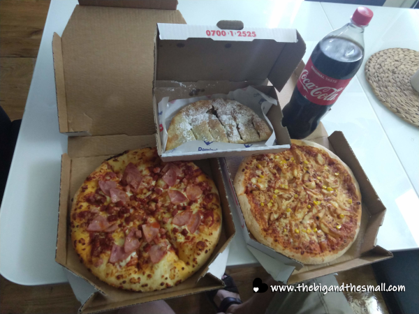 On one of our first days here, while we were walking to the grocery store, we saw a car drive by with a Domino's delivery sign on it. They have Domino's here?! we said to each other. Hmmm, maybe we'll have to try that sometime... After all, we did try Pizza Hut when we were in Wales so this could be us just continuing that trend. And ya know, we could write about it for the blog... Fast forward to last Friday when mid-afternoon hit, I was starving, I didn't feel like cooking, and neither of us were feeling any of the food we had in the house. I remembered the Domino's delivery car and so it was decided, we would figure out how to order some!