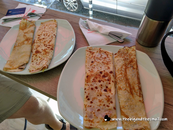 On another day, Joel was craving pancakes that he had seen signs for around the city. Turns out that by pancakes, they meant crepes. Instead of stopping at a roadside stand we went to an actual restaurant with seats and everything to try this one. The two ladies working were really friendly and spoke just enough English to help us order.