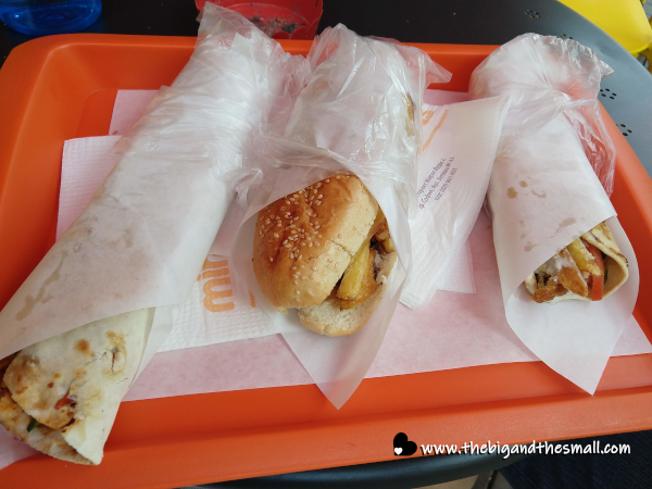 The next time we went downtown was the day all the things went wrong, and it took is far too long to finally get to some food. We ended up at a place on the pedestrian walkways called Miral Foods, which was a fast-food chain of sorts. We sent Joel in with a 10 lev budget (about $5) and he got three different sandwiches for that price! I'm glad it was cheap, though, as this was probably our least favorite place we ate. From left to right was a spicy veggie wrap, a chicken sandwich, and a falafel wrap. None of them were done well and the bread on the sandwich was kind of stale. We saved the rest of that day though by finding our favorite gelato place in Sofia.