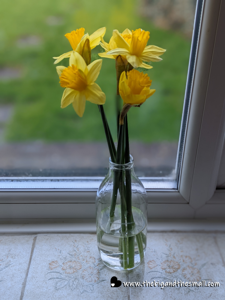 At this time the UK was still requiring that you isolate for 10 days, so we immediately cancelled all plans, found cover for me for the coming Sunday, and hunkered down at home. I don’t really remember much about this time except for feeling incredibly exhausted and just sleeping all of the time. I do have a picture of some lovely daffodils a church member brought by along with an emergency delivery of some Lemsip. (He left it all on the doorstep!)
