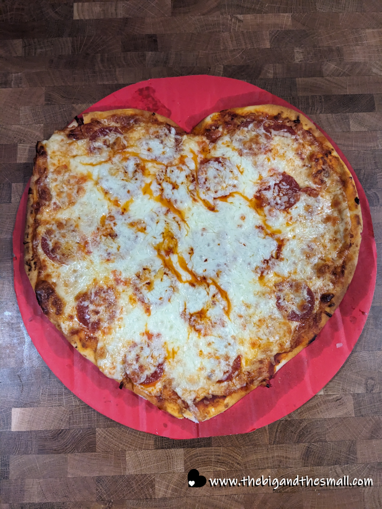 Joel and I are pretty chill about Valentine’s Day, so this year we bought a heart-shaped pizza from Asda and stayed home to watch romantic comedies in our cinema room.