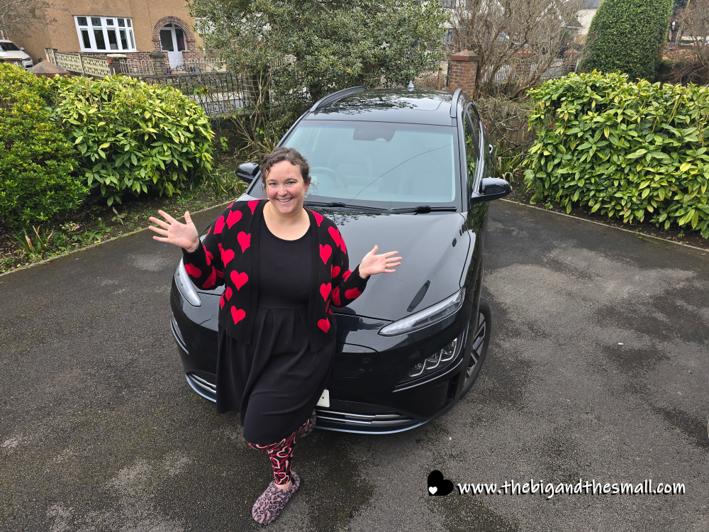 On Valentine’s Day, we took delivery of our new car! We went back to the Hyundai Kona electric, and back to purchasing from Drive Green, who have a car delivery service. The car was driven to our door, we completed the purchasing process online and then it was ours. The color of the new car is called “Dark Knight” so we have named it Bruce. I love that it has a sunroof!